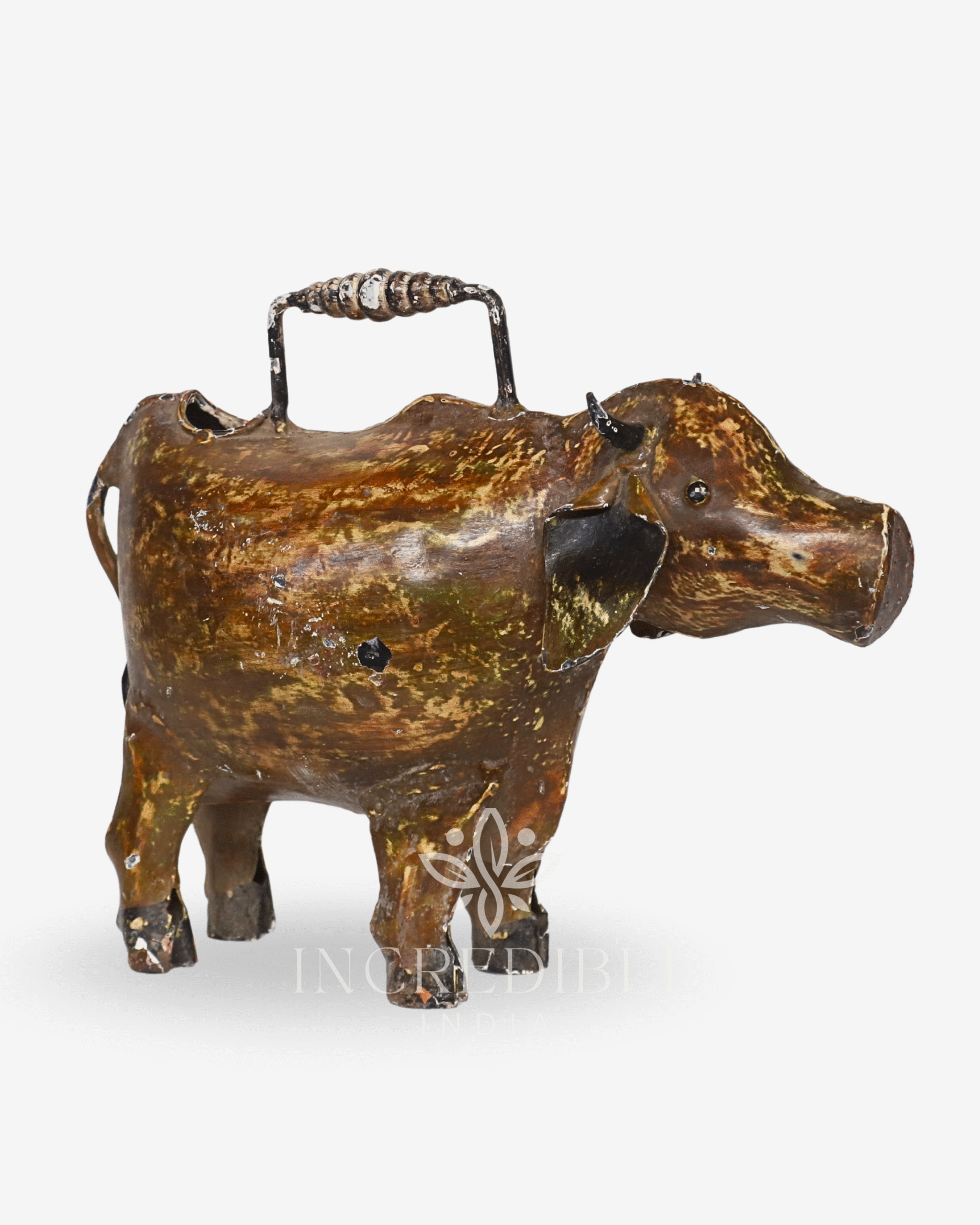 Rustic charm meets rural tradition in this handcrafted metal bull figurine. Featuring a rich, hand-painted brown finish and a sturdy curved handle on top, this piece captures the rugged spirit of the countryside. Aged detailing and vintage texture give it an antique look, making it a distinctive décor item for both indoor and outdoor spaces.
