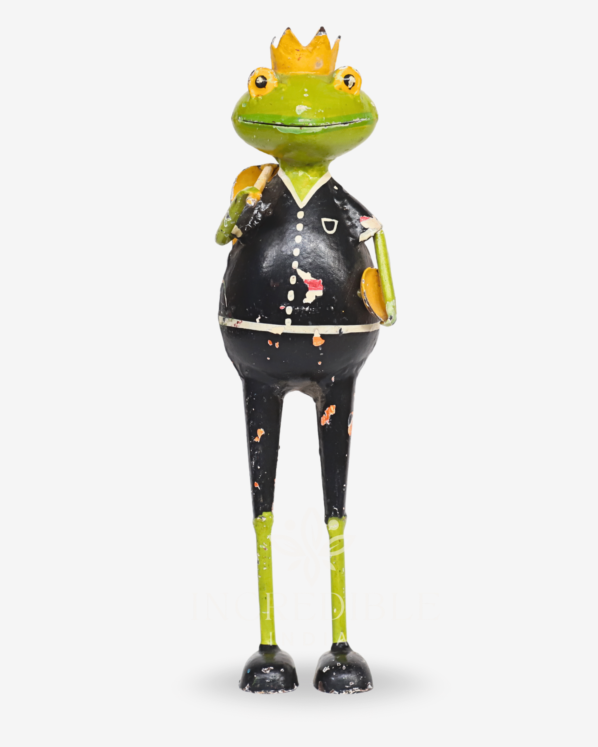 Finish: Rustic distressed paint with folk-art accents