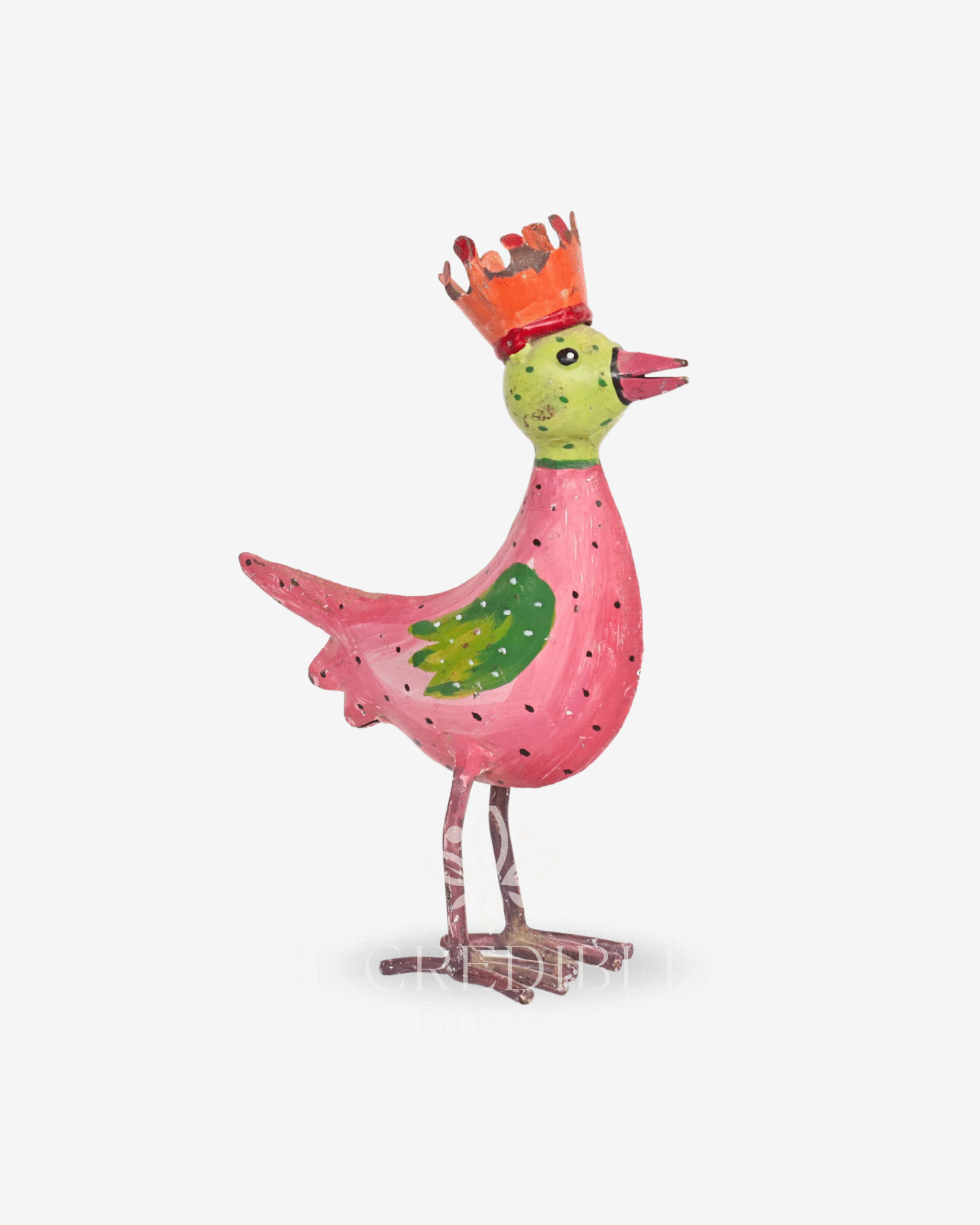 Bursting with folk-inspired personality, this handcrafted wooden owl figurine adds a wise and whimsical flair to your décor. With a charmingly carved body, painted in earthy shades of orange, yellow, and rosewood pink, it features textured feather patterns, bold button eyes, and playful geometric detailing. The distressed finish enhances its handcrafted authenticity, making it a standout piece with vintage charm.